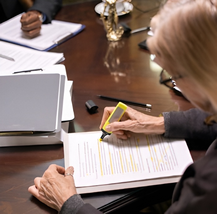 Image of two people (from neck down) reviewing a contract.